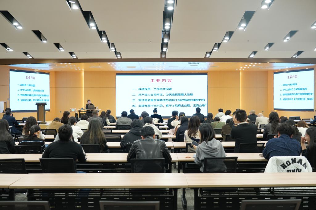 3月25日,我校特邀河北省委党校哲学教研部副教授靳娇娇到校作《习近平总书记关于树立和践行正确政绩观的重要论述》专题讲座。学校理事长张丽,校领导裴红彬、甄墨、甄心恒、麻立峰及全体科级以上领导干部参加学习。靳娇娇围绕习近平总书记关于树立和践行正确政绩观的重要论述,从“因何重要—政绩观是一个根本性问题”“为谁而树—共产党人必须牢记,为民造福是最大政绩”“树何政绩—...