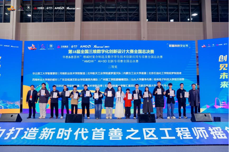 11月16日,第18届全国三维数字化创新设计大赛全国总决赛暨“龙鼎奖”颁奖盛典在北京石油化工学院举行。我校设计学院教师耿欣,带领学生杨骏、徐艺婷组成的参赛团队,凭借作品《“朦胧空竹磬”——空竹虚拟展厅》在“AMD杯”AI+3D创新专项赛道中脱颖而出,成功斩获国家级二等奖。全国三维数字化创新设计大赛颁奖典礼全国三维数字化创新设计大赛系全国普通高校学科竞赛排行榜赛事,由国...
