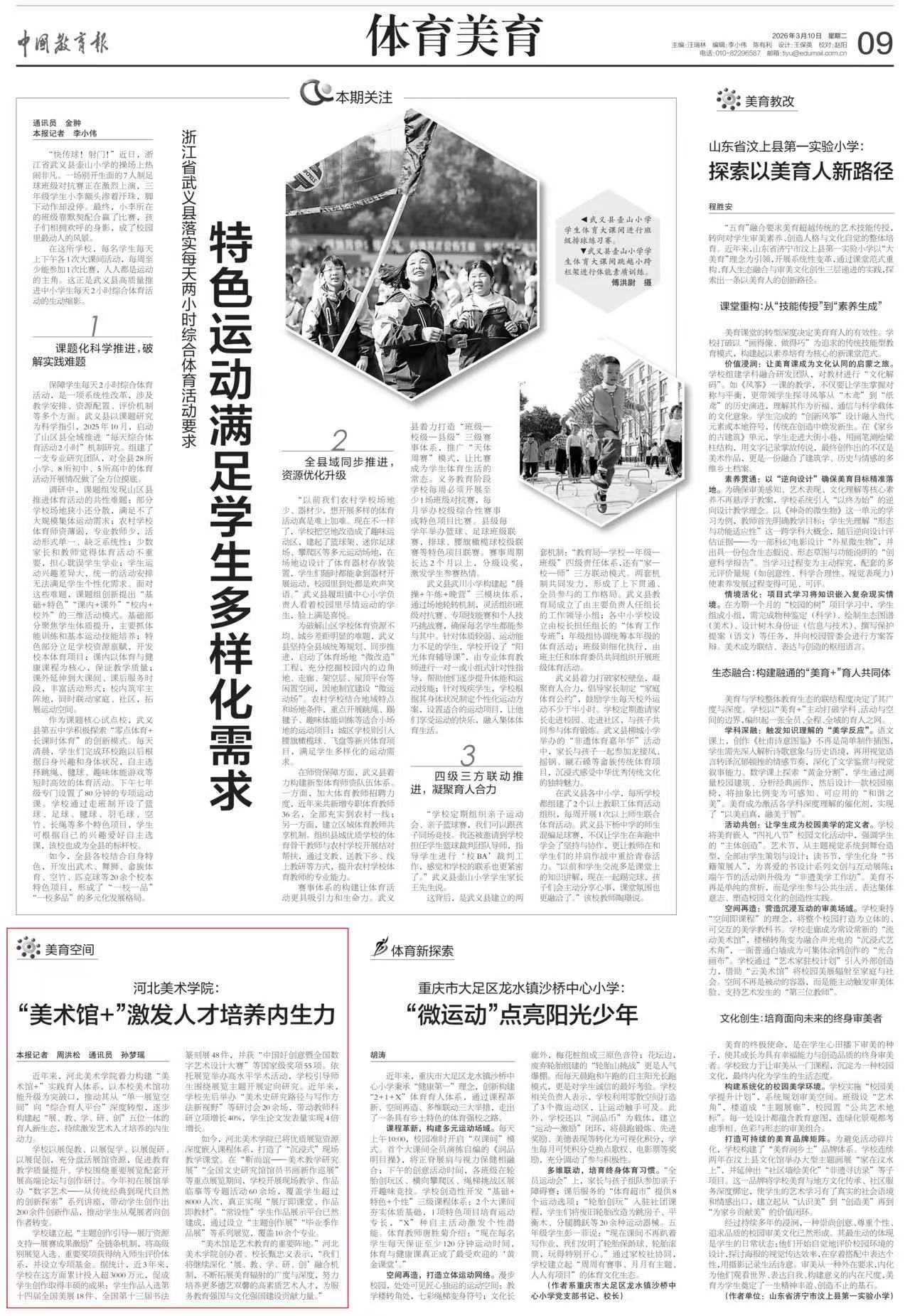 3月10日出版的《中国教育报》在第9版体育美育版面,以《河北美术学院:“美术馆+”激发人才培养内生力》为题,报道我校以美术馆功能升级为突破口,构建起“展、教、学、研、创”五位一体的育人新生态。河北美术学院:“美术馆+”激发人才培养内生力近年来,河北美术学院着力构建“美术馆+”实践育人体系,以本校美术馆功能升级为突破口,推动其从“单一展览空间”向“综合育人平台”深...