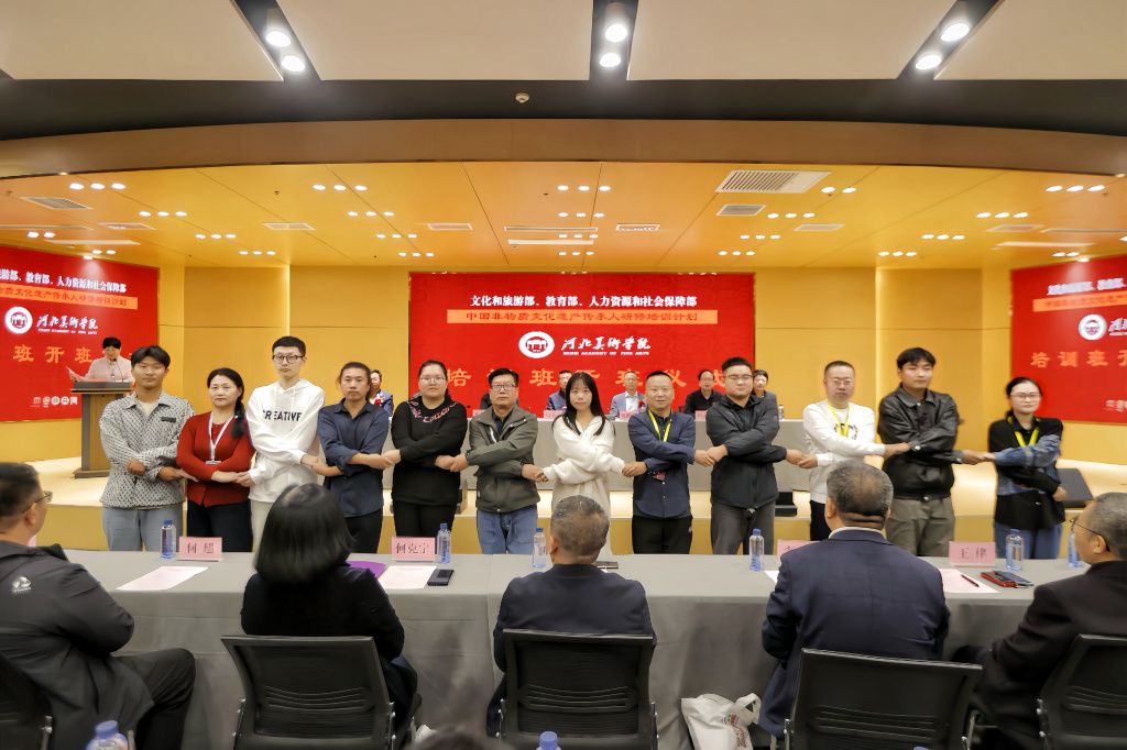10月13日上午,文化和旅游部、教育部、人力资源和社会保障部“中国非物质文化遗产传承人研修培训计划”第21期陶瓷烧制技艺、第22期雕刻技艺数字化创新人才研培班开班仪式,在河北美术学院罗马城堡举行。来自全国十余个省市的60名非遗传承人及非遗文创从业者参会,开启学习旅程。