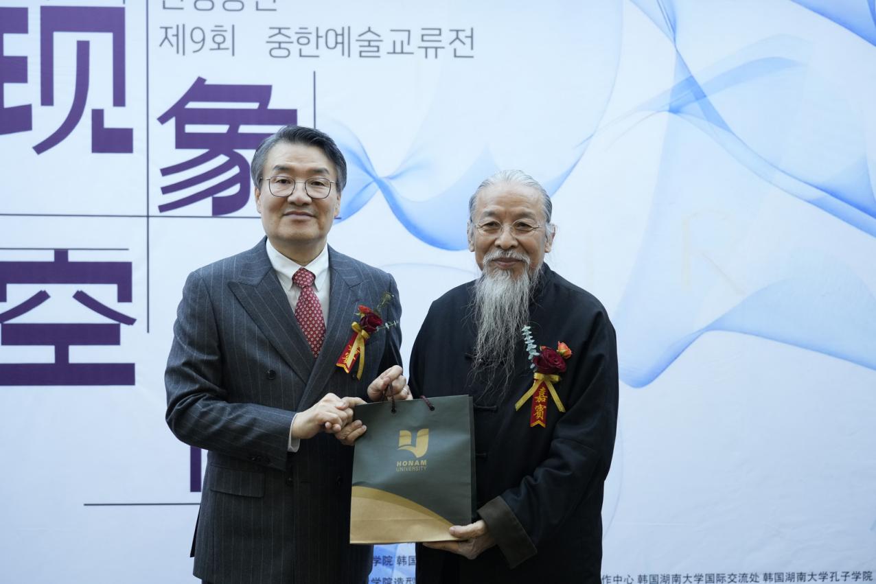 韩国湖南大学校长朴相澈对第九届中韩艺术交流展的顺利开幕表示热烈祝贺,并对两校工作人员的辛勤付出表达感谢。他指出,艺术是连接情感与思想的重要语言,此次展览不仅是艺术的交汇,更是精神与空间的融合。期待未来两校继续深化合作,共同开创创意与愿景并存的未来。