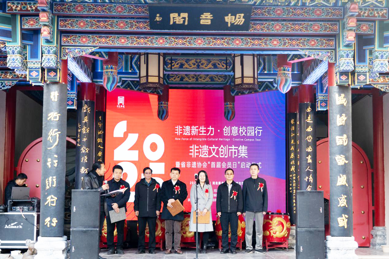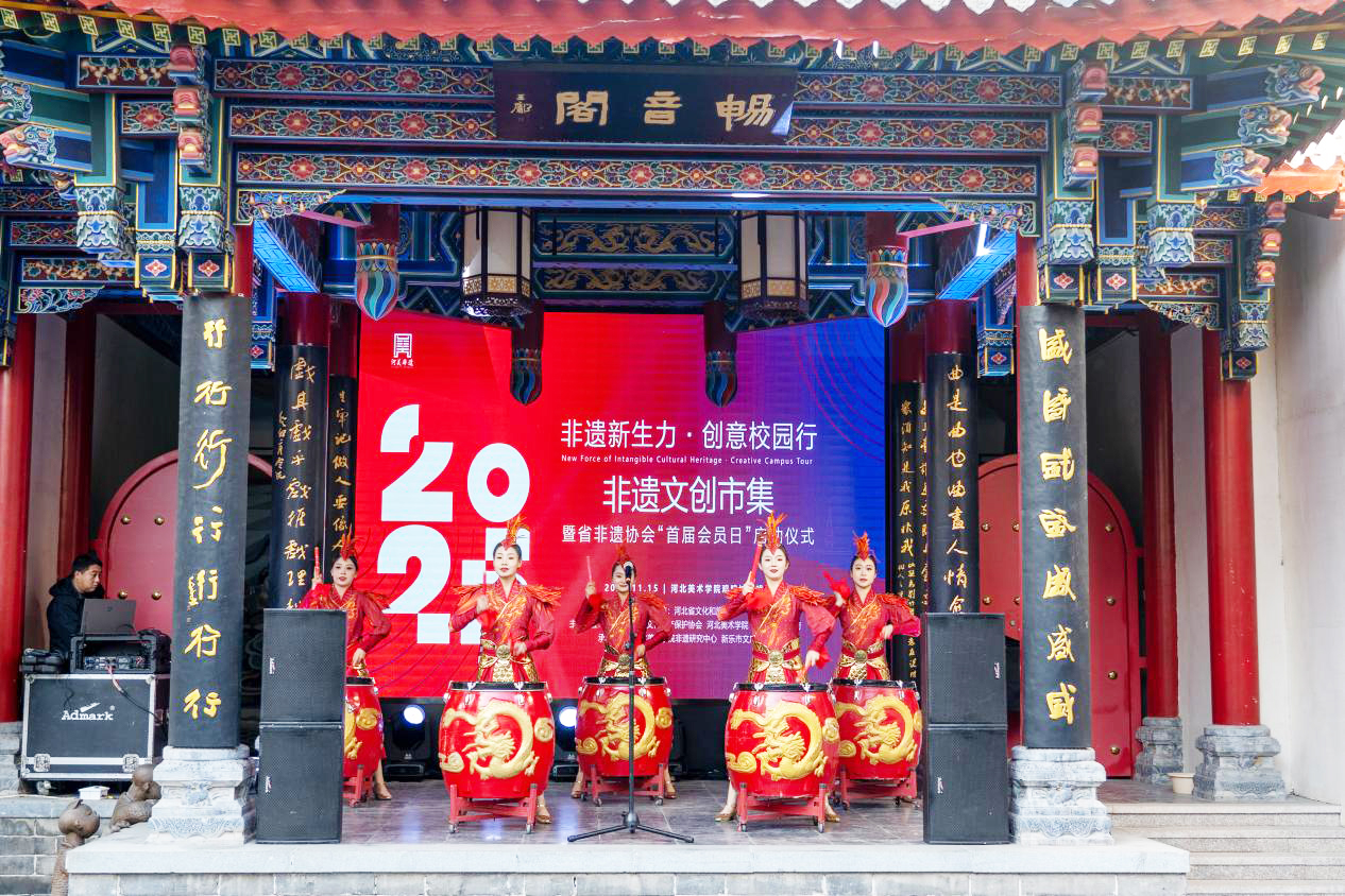 11月15日,由河北省文化和旅游厅指导,河北省非物质文化遗产保护协会、河北美术学院、新乐市人民政府联合主办,河北美术学院非物质文化遗产研究中心、新乐市文广体旅局联合承办的2025年“非遗新生力·创意校园行”非遗文创市集暨河北省非遗保护协会“首届会员日”活动,在河北美术学院鸡鸣城(非遗城)正式启动。