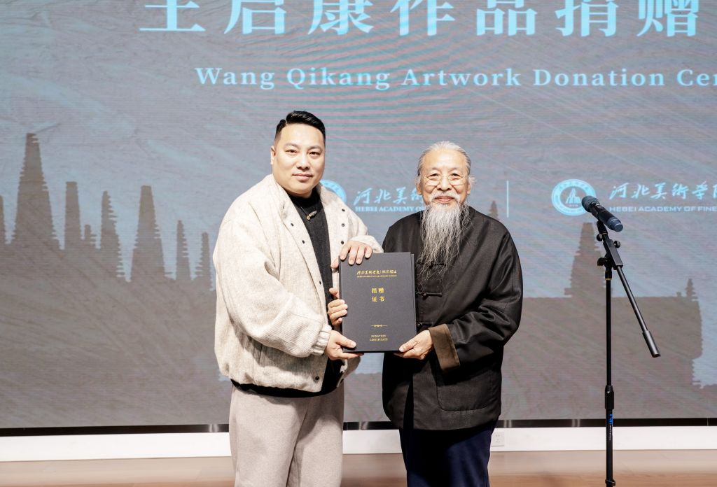 河北美术学院校长甄忠义向王麟颁发捐赠证书