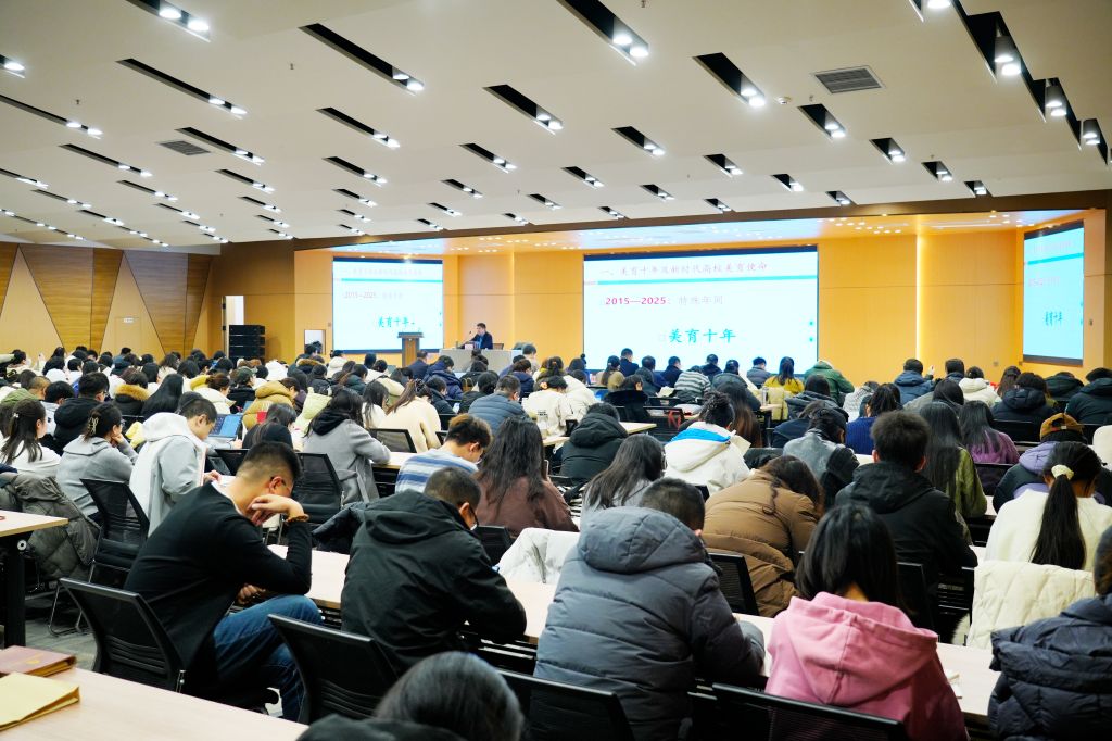 整场讲座逻辑严密、内容丰富,既对理论高度进行了深入阐释,又在实践层面给予了精准指导,为我校进一步优化美育工作布局、丰富美育实施路径、提升美育育人实效提供了清晰的思路和宝贵的借鉴。参会师生纷纷表示,将以此次讲座为契机,加深对美育工作的理解与认识,积极参与美育实践,助力学校构建特色鲜明、内涵丰富的美育育人体系,切实发挥美育在立德树人中的重要作用。
