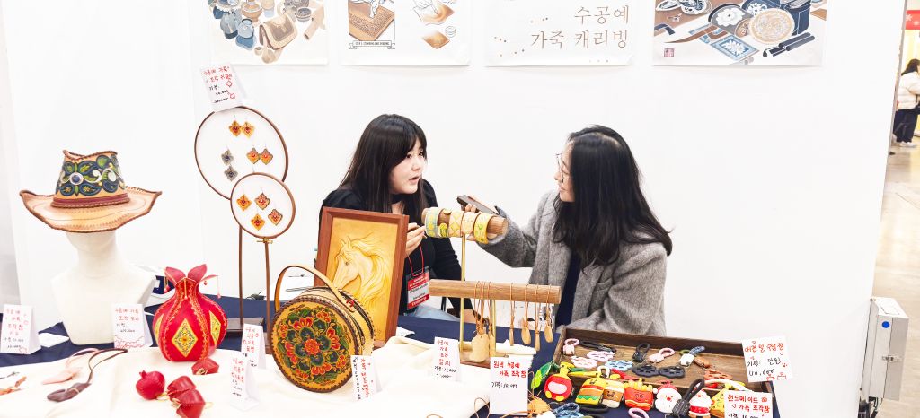 12月12日,第七届韩国釜山国际手工文化展在釜山会展中心盛大启幕。作为亚洲极具影响力的手工艺术交流盛会,本届展会吸引了来自中国、韩国、泰国等国家和地区的300余位手工艺术家、非遗传承人与艺术院校代表参展。河北美术学院设计学院非遗教研室主任周子祺,设计基础教研室副主任崔馨月,非遗专业骨干教师刘凯欢、孟威携手工皮雕及清苑传统制香两大系列精品亮相,以兼具传统底蕴与现代审美的艺术创作,在国际舞台上展现了中国非遗技艺的独特魅力,不仅引发现场观众广泛关注,更受到釜山当地主流华语媒体《釜山华语知音》的专题采访。