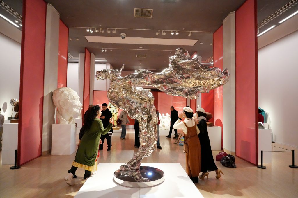 “首届青年雕塑作品展览”集中展示了全国青年艺术家的雕塑创作成果,将青年雕塑创作者的艺术力量与传统文化的创新表达推向全国观众。展览期间,学校面向公众免费开放预约,累计吸引参观人次超85万,并获得主流媒体广泛关注。此次展览创下中国美协专项展的历史参观纪录,成为艺术与文旅融合、美育与社会效益共赢的生动典范。
