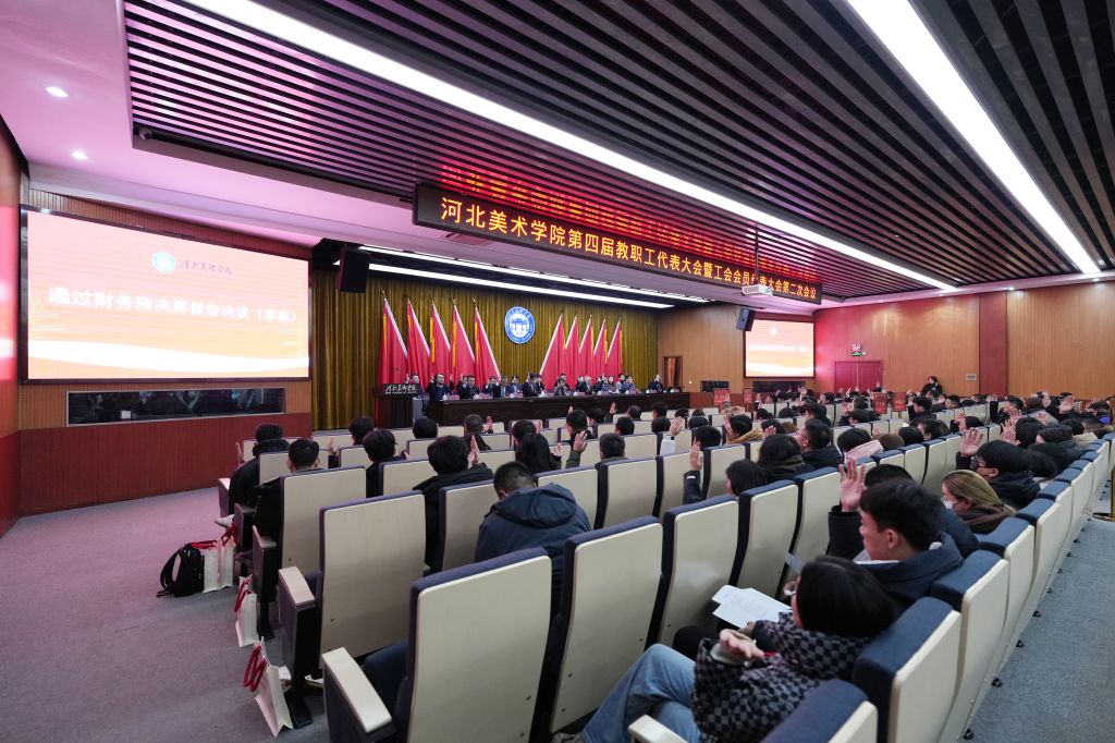 在第二次全体会议上,代表们举手表决通过了学校工作报告、工会工作报告、财务预决算报告、《河北美术学院2026年网络安全工作总清单》等决议。