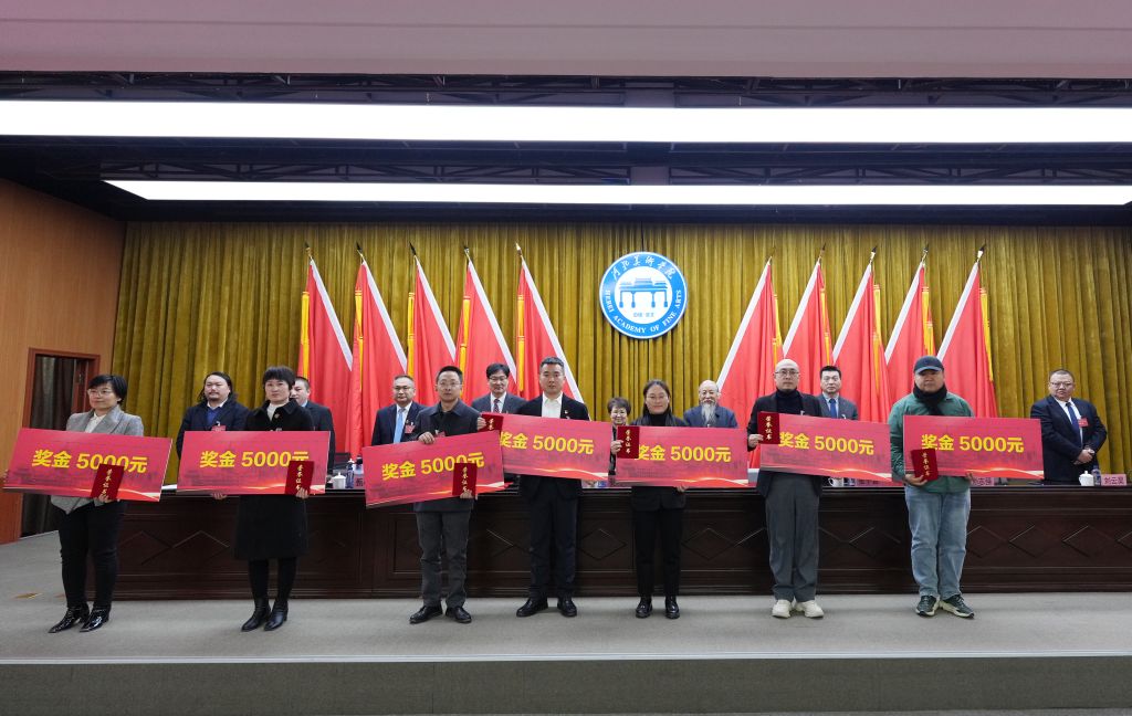 随后召开了2025年度优秀中层领导干部表彰大会。甄心恒宣读《河北美术学院关于表彰2025年度综合考核优秀单位及中层领导干部的决定》。与会校领导为党政办公室、设计学院等8个综合考核优秀单位,周哲等20名优秀中层领导干部颁奖。