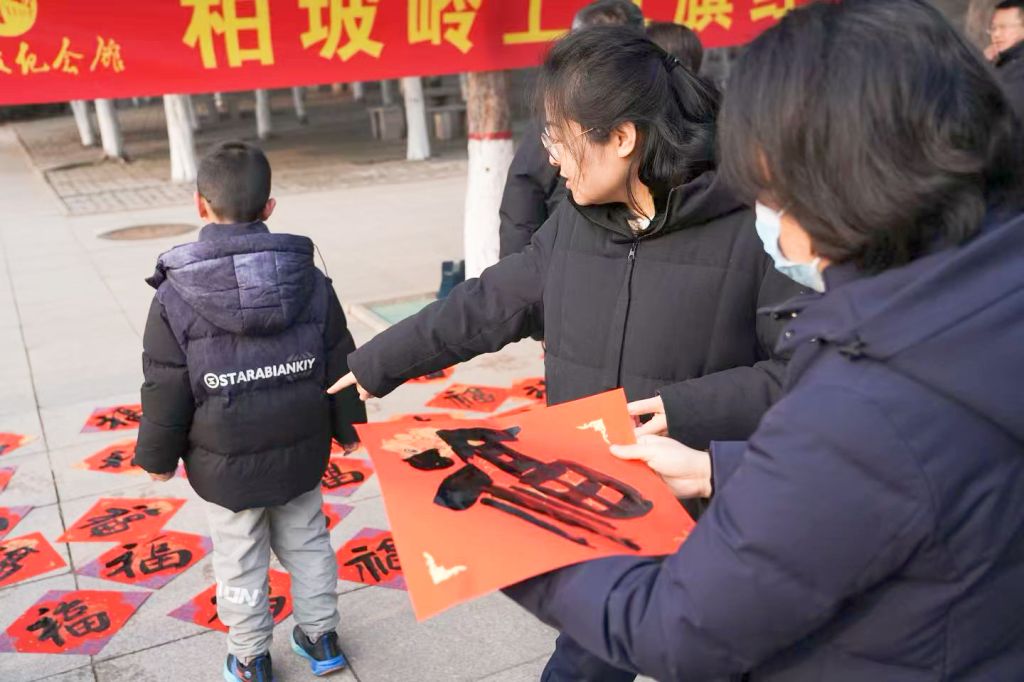 活动现场墨香洋溢,老师们专注挥毫,将红色情怀倾注笔端。篆、隶、楷、行各具特色,线条流畅、结构和谐,一幅幅春联和“福”字墨韵生动、寓意美好。老师们将作品赠予纪念馆工作人员与参观游客,红联墨香中寄托了对革命圣地的敬意。