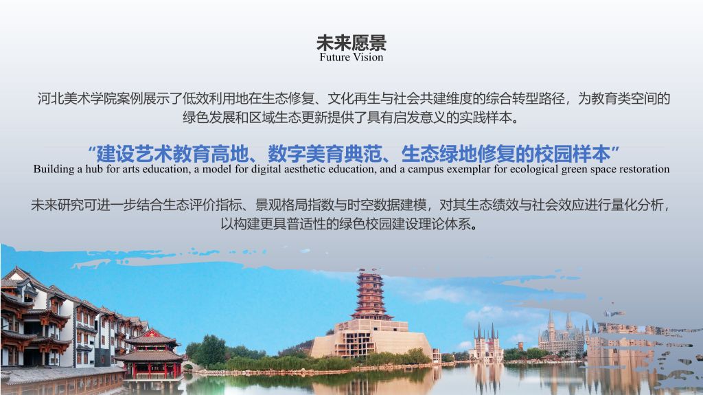此次入选国际大奖提名项目,是对河北美术学院长期坚持绿色发展理念、持续推进高质量校园建设的充分肯定,也体现了学校在生态校园建设与空间创新领域所形成的阶段性成果及其获得的国际认可度。未来,学校将以此为契机,进一步深化生态修复、空间再生与艺术教育融合研究,积极参与国际交流与合作,总结并完善以“艺术—教育—生态”协同为核心的校园再生路径,推动相关经验在教育类空间及区域更新实践中的转化应用,形成具备可借鉴性、可推广性与可复制性的实践范式,并为全国沙荒地及类似退化用地的生态修复与高质量建设提供可参考的实践经验与路径示范,为教育空间的可持续发展和区域生态更新贡献具有示范意义的“河北美术学院经验”。