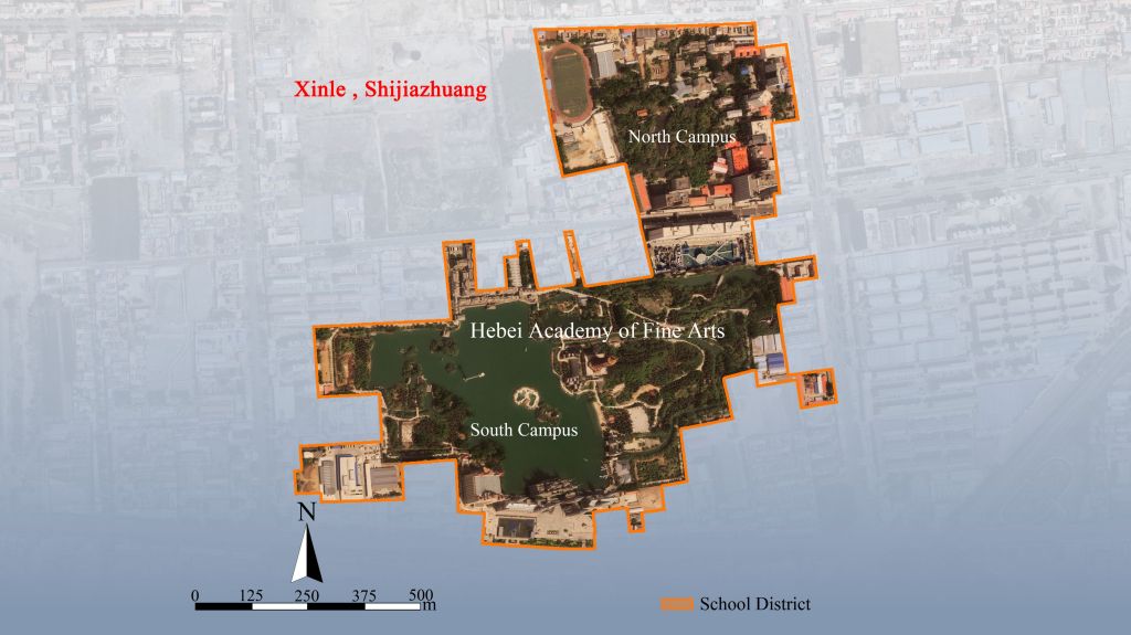 在理论建构与研究层面,设计学院董小龙、陈利伟、高洋等多位骨干教师组成研究团队,围绕校园土地利用优化与生态重构开展系统研究,基于20年校园建设实践的持续积累,系统整合多时相高分辨率卫星遥感影像与相关空间数据,通过梳理与分析校园土地利用的长期变化过程,科学揭示河北美术学院校园土地利用的动态演化特征,为校园建设策略的持续优化与更新提供了可靠的数据支撑与方法依据。由此,校园建设路径逐步由早期“以用为先”的空间拓展,转向“以生态为底、以文化为魂”的整体更新模式,构建了以文化、空间与生态协同为核心的多级再生机制,形成了具有连续性、系统性与示范意义的校园发展范例。