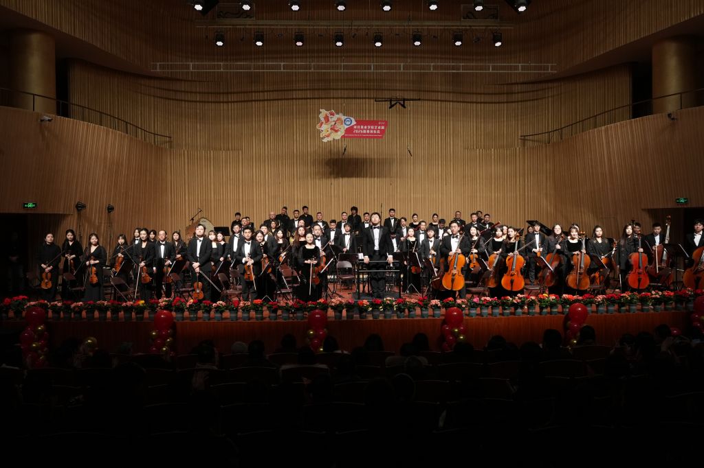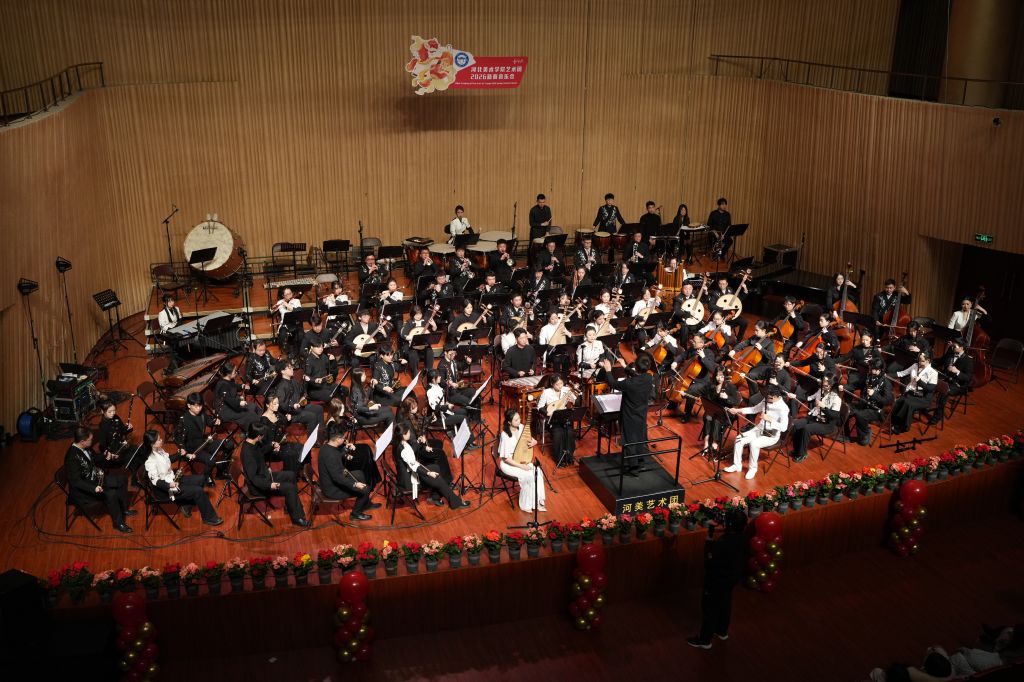 此次新春音乐会是河北美术学院坚持以美育人、以文化人的生动实践,也是学校服务社会、奉献人民的责任担当。从红色经典的深情演绎到民族风情的绚丽绽放,从西方交响的磅礴气势到华夏弦歌的悠远意境,河美师生以精湛技艺诠释着"艺术为人民服务"的初心使命,以文化自信奏响新时代高等艺术教育的最强音。未来,学校将继续深耕美育沃土,搭建艺术桥梁,推出更多优质文化活动,不断满足广大师生和社会各界的精神文化需求,提高我校美育教育与社会服务水平。