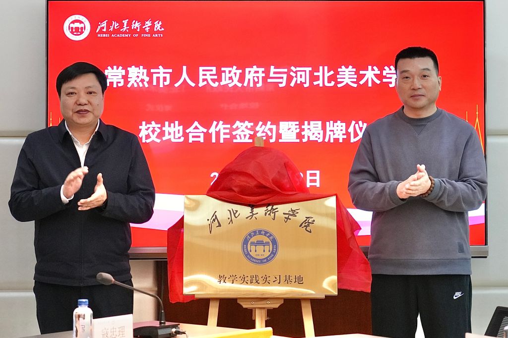 张子言与钱强共同为“河北美术学院教学实践实习基地”揭牌;麻立峰与陆晗共同为“常熟市高质量文化艺术人才引进共建单位”揭牌,象征着校地双方在人才培养、人才引进等方面的合作落地生根,将为青年学子提供实践平台,为常熟市招才引智搭建重要桥梁。