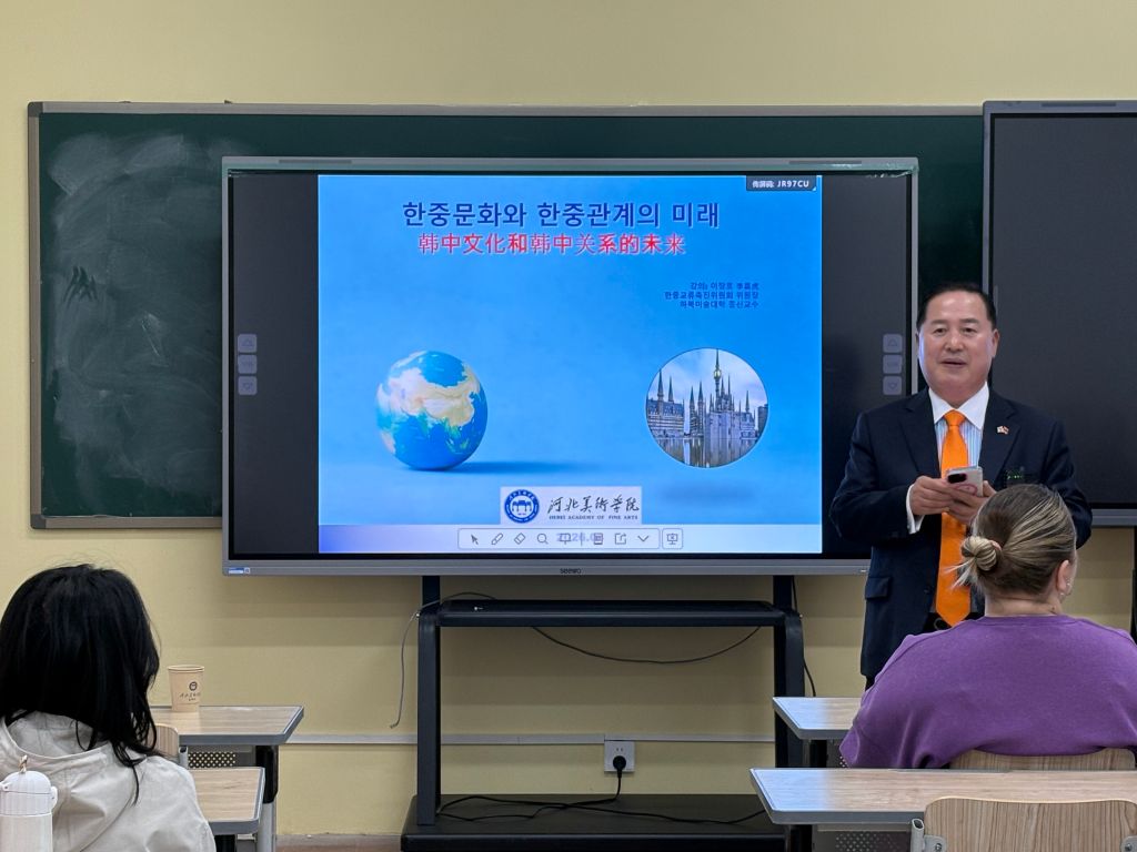 3月25日上午,韩国李昌虎教授到访河北美术学院,与国际教育学院在校留学生开展中韩文化专题交流活动。国际教育学院院长兰新成、副院长郝金龙及来自不同国家的30余名留学生参加本次交流活动。