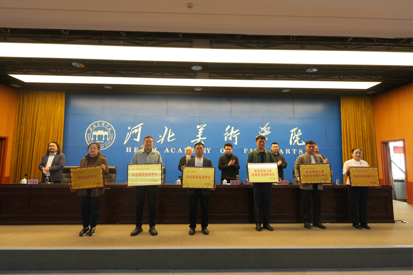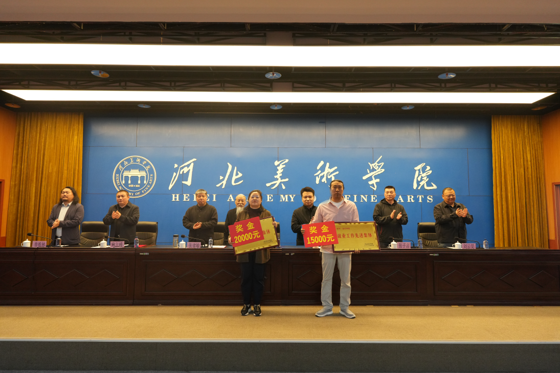 张建敏宣读表彰决定,授予书法学院、设计学院“2025年度毕业生就业工作先进集体”荣誉称号;授予孙家豪等11名辅导员、宋红伟等2名就业工作人员“2025年度毕业生就业工作先进个人”荣誉称号;授予雕塑与公共艺术学院、书法学院“2025年度访企拓岗先进单位”荣誉称号;授予未来智能艺术学院、影视艺术学院“2025年度职业规划大赛校赛优秀组织单位”荣誉称号;授予雕塑与公共艺术学院“2025年度就业质量贡献单位”荣誉称号;授予邓宝辉等5名专任教师“2025年度访企拓岗能手”荣誉称号;授予专任教师王婉婷“2025年度校园招聘优秀组织者”荣誉称号;授予系副主任葛稳博“2025年度就业工作创新先锋”荣誉称号。