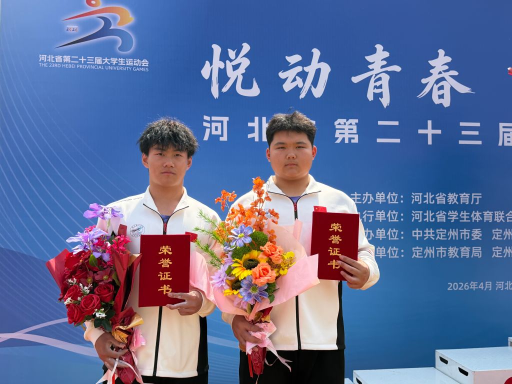4月25日,由河北省教育厅主办,河北省学生体育联合会执行,中共定州市委、定州市人民政府承办的河北省第二十三届大学生运动会在河北定州中学圆满落幕。本次大赛汇聚了来自全省112所高校的3690名体育健儿同场竞技,我校代表团奋勇拼搏,斩获男子丙组铅球铜牌,实现了我校在河北省大学生运动会奖牌零的突破,同时获得男子丙组铁饼第四名、第八名,男子甲组链球第五名、第六名,男子丙组标枪第八名,男子甲组5000米竞走第八名等多项优异成绩,充分展现了我校学子昂扬向上的青春风貌与过硬的体育素养。