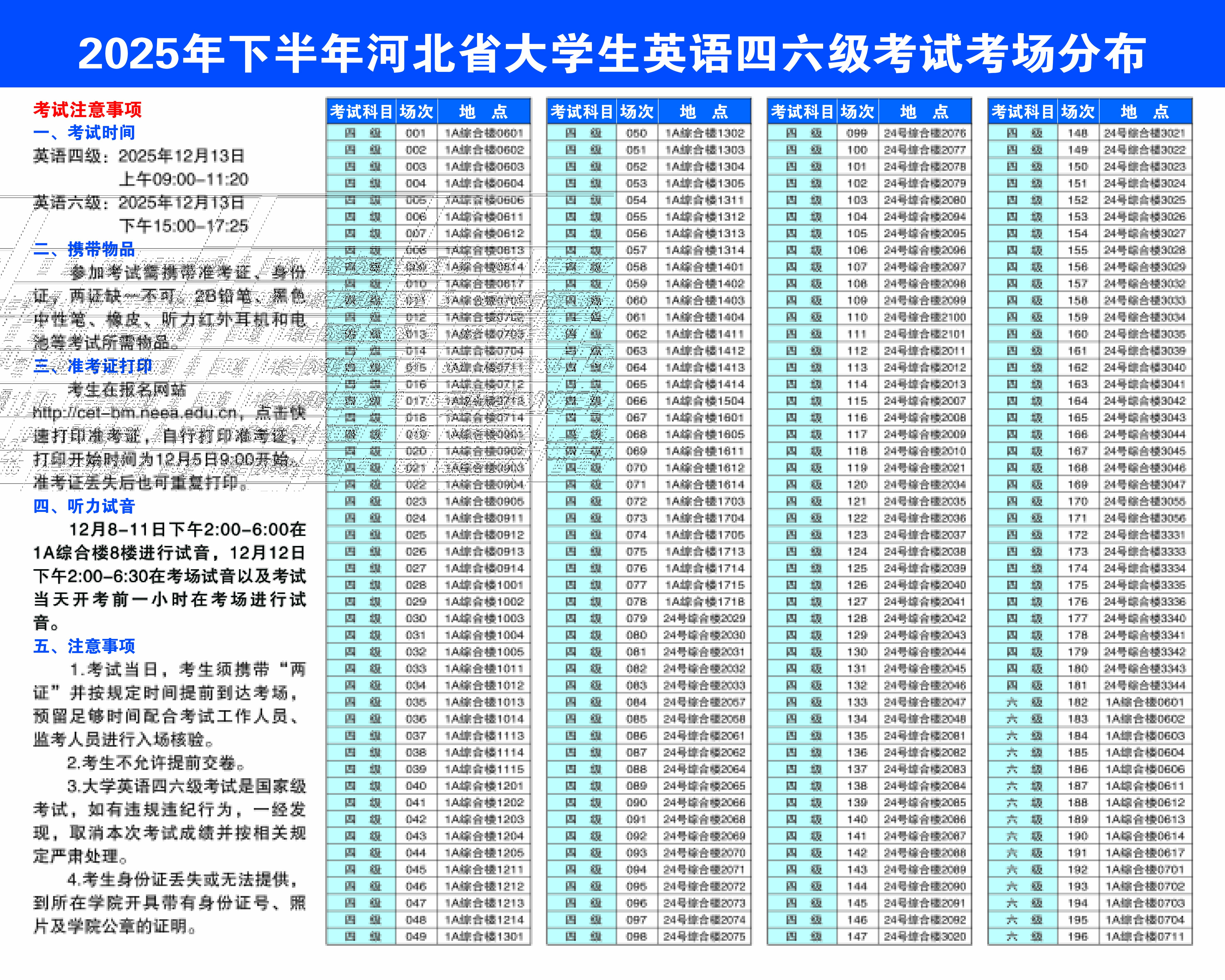 2025年下半年全国大学英语四、六级考试将于12月13日进行,为确保考生顺利参加考试,现将有关事项提示如下:
