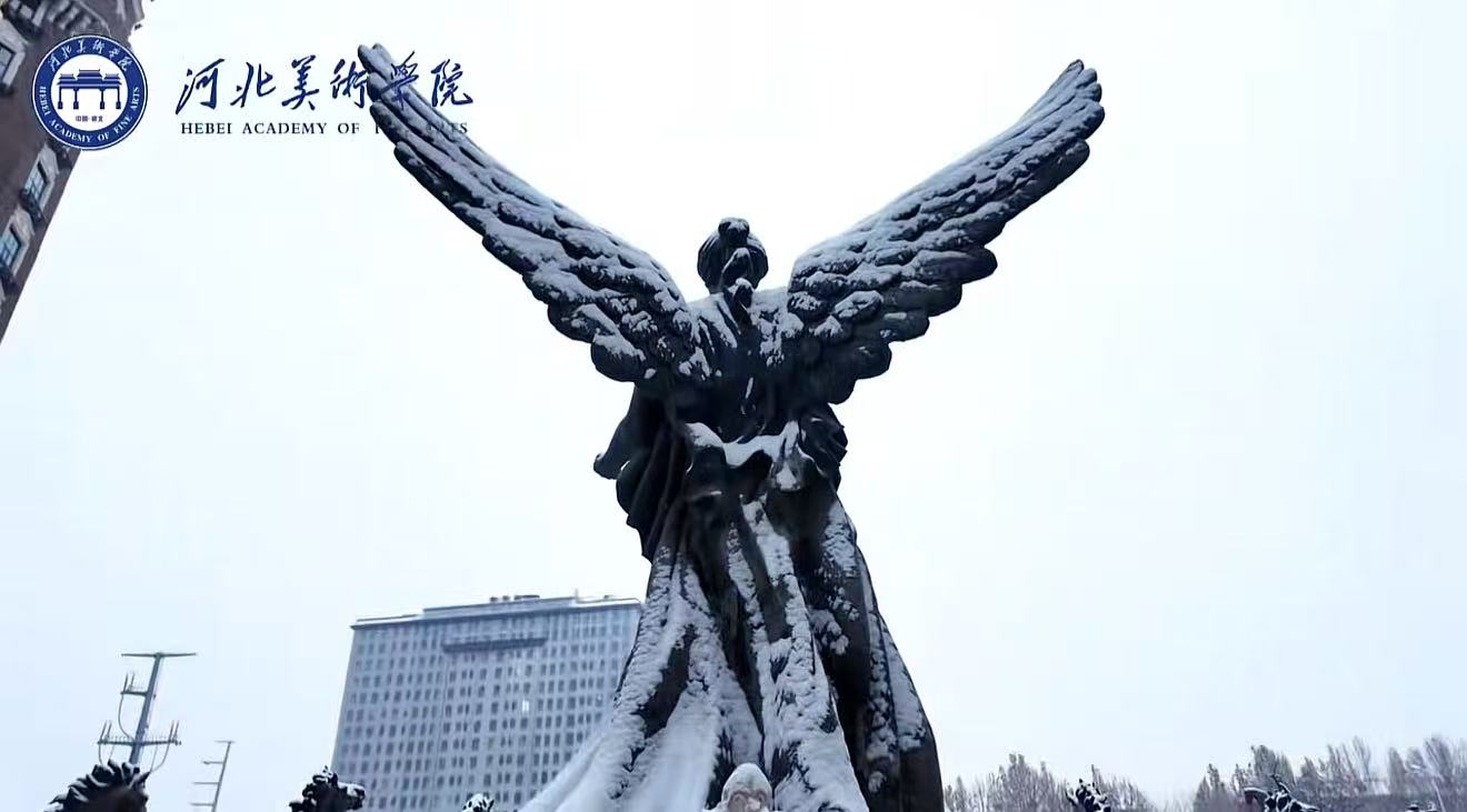 初雪赴今朝 雪吻美院白了梢