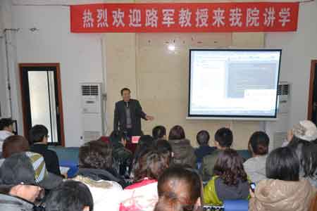 2011年11月17日,团中央“青年创业国际计划组织”创业导师、北京市教委就业指导中心特约专家、国际劳工组织认证的KAB讲师路军教授应邀来我校为全校师生做题为“大学生创业项目选择与营销”主题讲座。