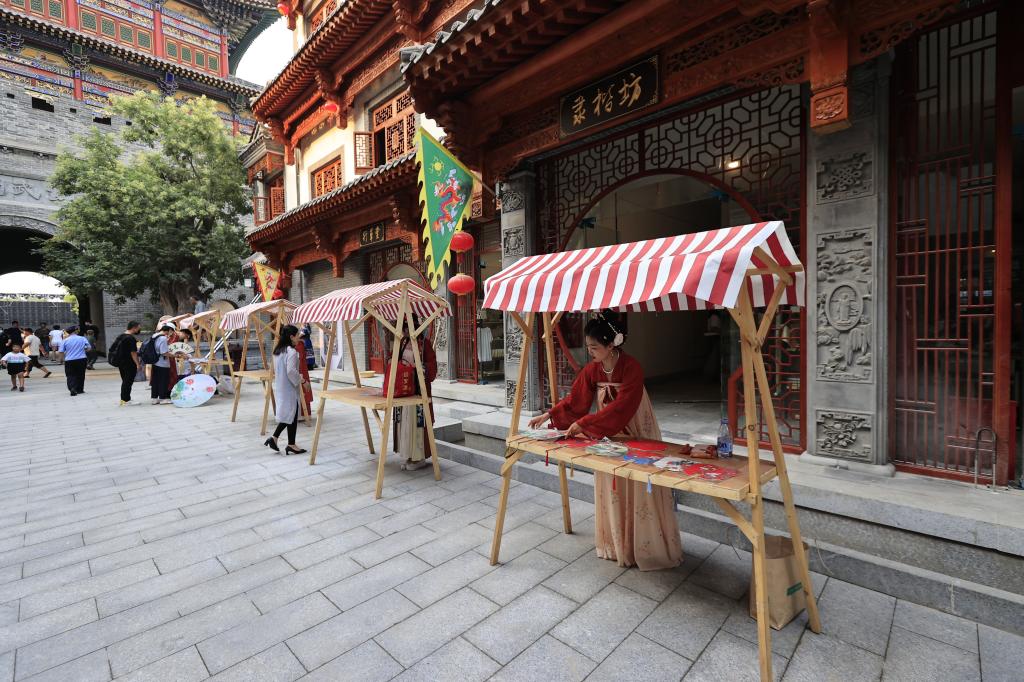 鸡鸣城城内设有艺术作品、创意设计、文创产品展览和销售的店铺102间,同时吸引非遗文化类项目创意团队入驻,将非物质文化遗产与旅游开发有机结合。在这里你可以体验彩绘、陶瓷、素描等特色项目,了解古代民风民俗,在吃、住、行、游、购、娱中穿越千年,体验古人生活,感受古城魅力,开启人生智慧。