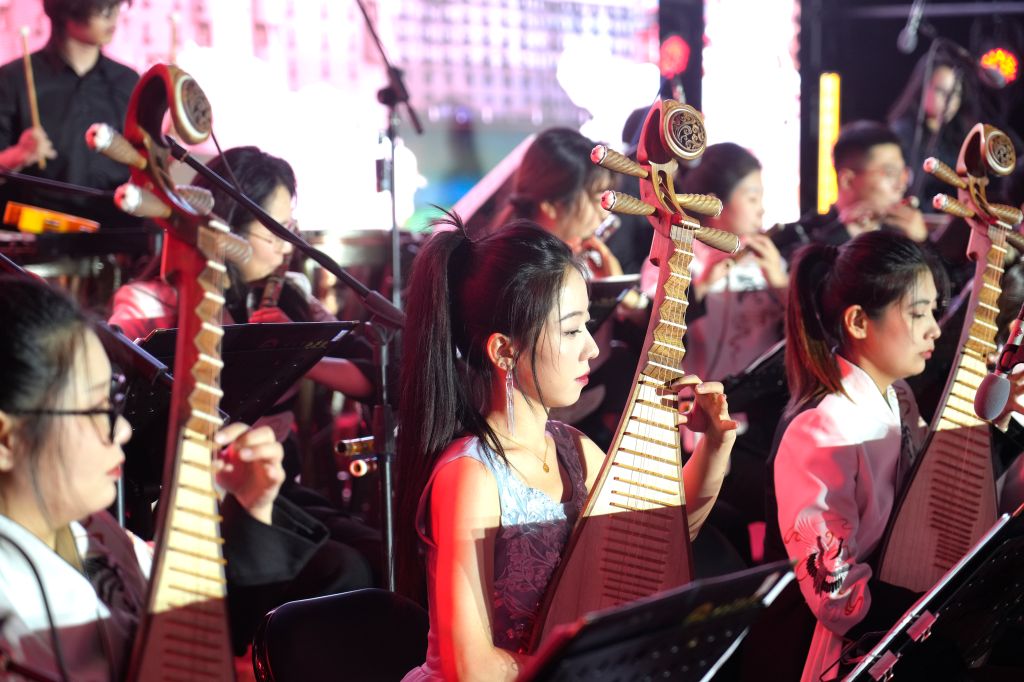 中阮协奏曲《绽放》通过现代作曲技法,展现生命破土而出的蓬勃力量;二胡协奏曲《长城随想》以如泣如诉的弓弦,抒发对历史的回望与对未来的憧憬。压轴曲目《花好月圆》以江南丝竹为基调,传递对团圆与美好的祝愿,将现场气氛推向高潮。