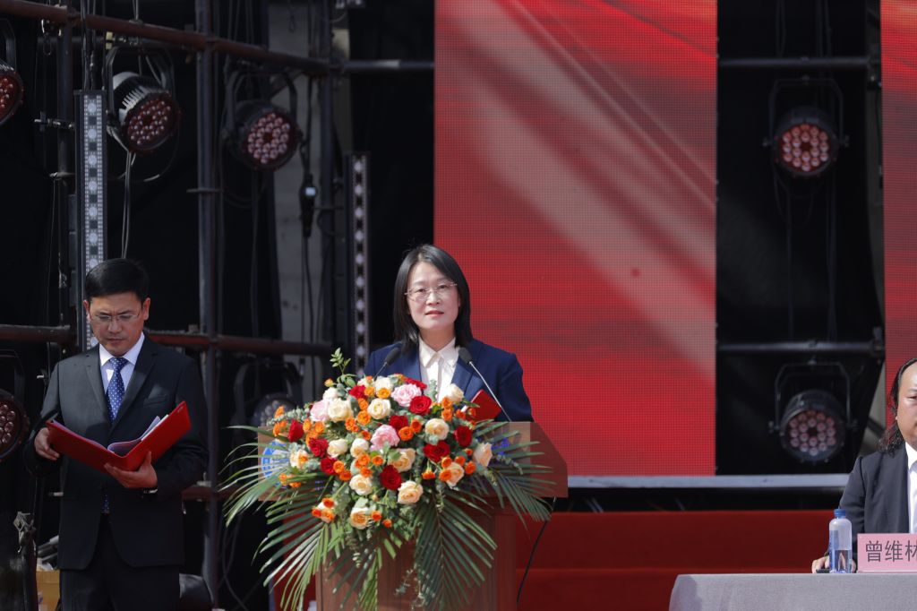 甄忠义致辞。他全面回顾了过去一年学校在党建思政、教育教学、科研创新、展馆育人、水上运动、国际交流、学生就业等方面取得的显著成果,并深入阐释了学校“盖大楼、请大师、铸大爱”的办学理念。他寄语新一代河美人,要心怀家国天下、涵养世界眼光,紧跟时代潮头、勇担创新使命,坚持学用济世、不断砥砺奋进,奋力交出一份无愧于历史、无愧于人民、无愧于时代的青春答卷。