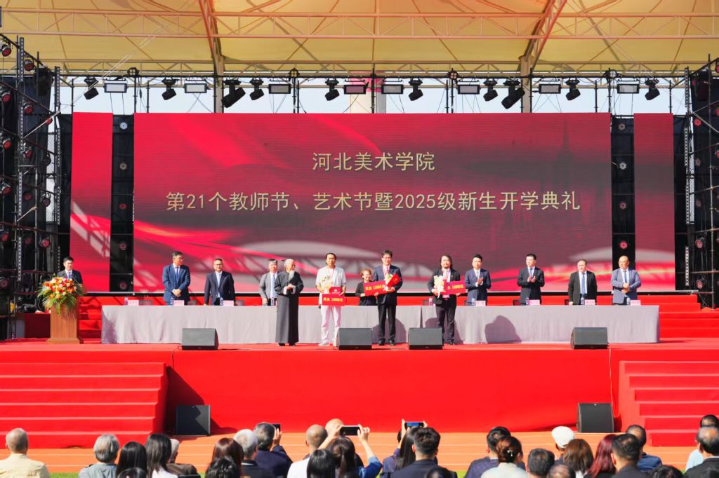 9月28日上午,河北美术学院第21个教师节、艺术节暨2025级新生开学典礼在校体育场举行。学校理事长张丽,学校举办者、校长甄忠义,督导专员、党委书记裴红彬,执行校长甄墨,常务副校长张建敏,副校长张子言,党委副书记、副校长甄心恒,党委副书记、副校长麻立峰,副校长崔景哲,校长助理刘云昊、曾维林,学校老领导、老教授代表,以及教职工代表、新生家长代表、校友代表、老生代表、2025级新生参加典礼。典礼由党政办公室主任周哲主持。