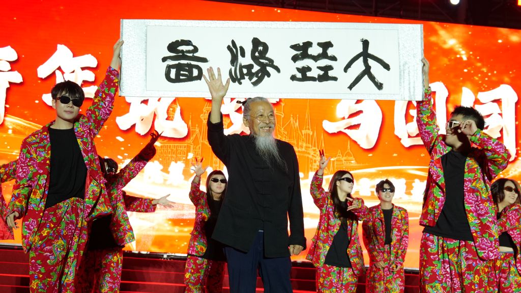 伴随着《大展鸿图》音乐的响起,学校举办者、校长甄忠义惊喜登台,现场挥毫写下“大展鸿图” 四字墨宝,笔力苍劲间满含期许,希望同学们可以牢记河北美术学院校训“自信自立,敢为人先”,在人生的新起点大展鸿图!