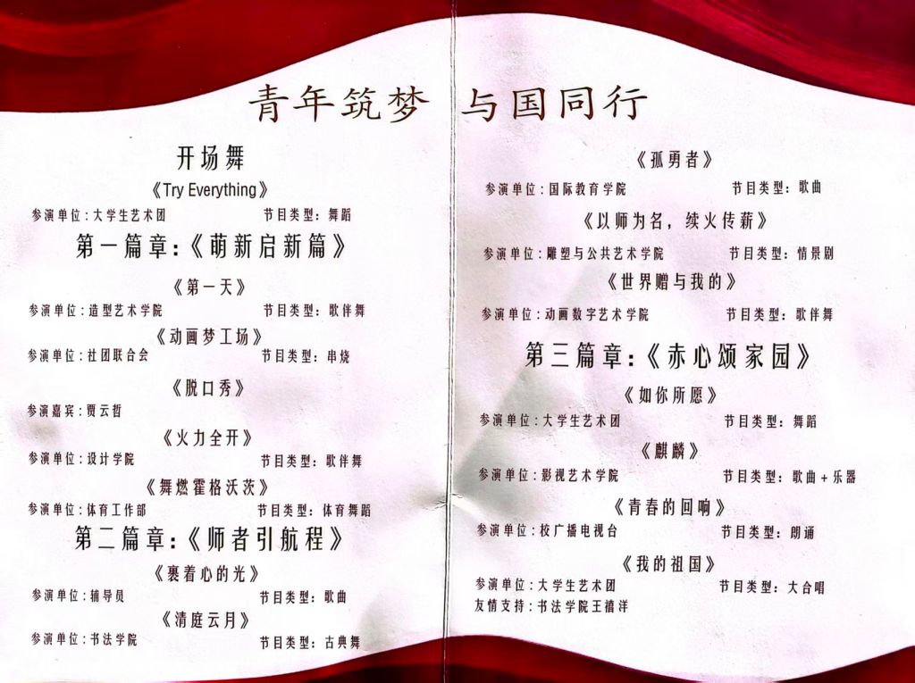 舞蹈《如你所愿》、说唱歌曲《麒麟》、朗诵《青春的回响》、歌曲《我的祖国》,无人机表演《龙章凤诏》,以家国情怀为核心,传递青年担当与赤子情怀,展现国潮新风与文化自信,在纪念中国人民抗日战争暨世界反法西斯战争胜利80周年的荣光时刻,抒发民族自豪感,书写河美学子薪火相传的新篇章。