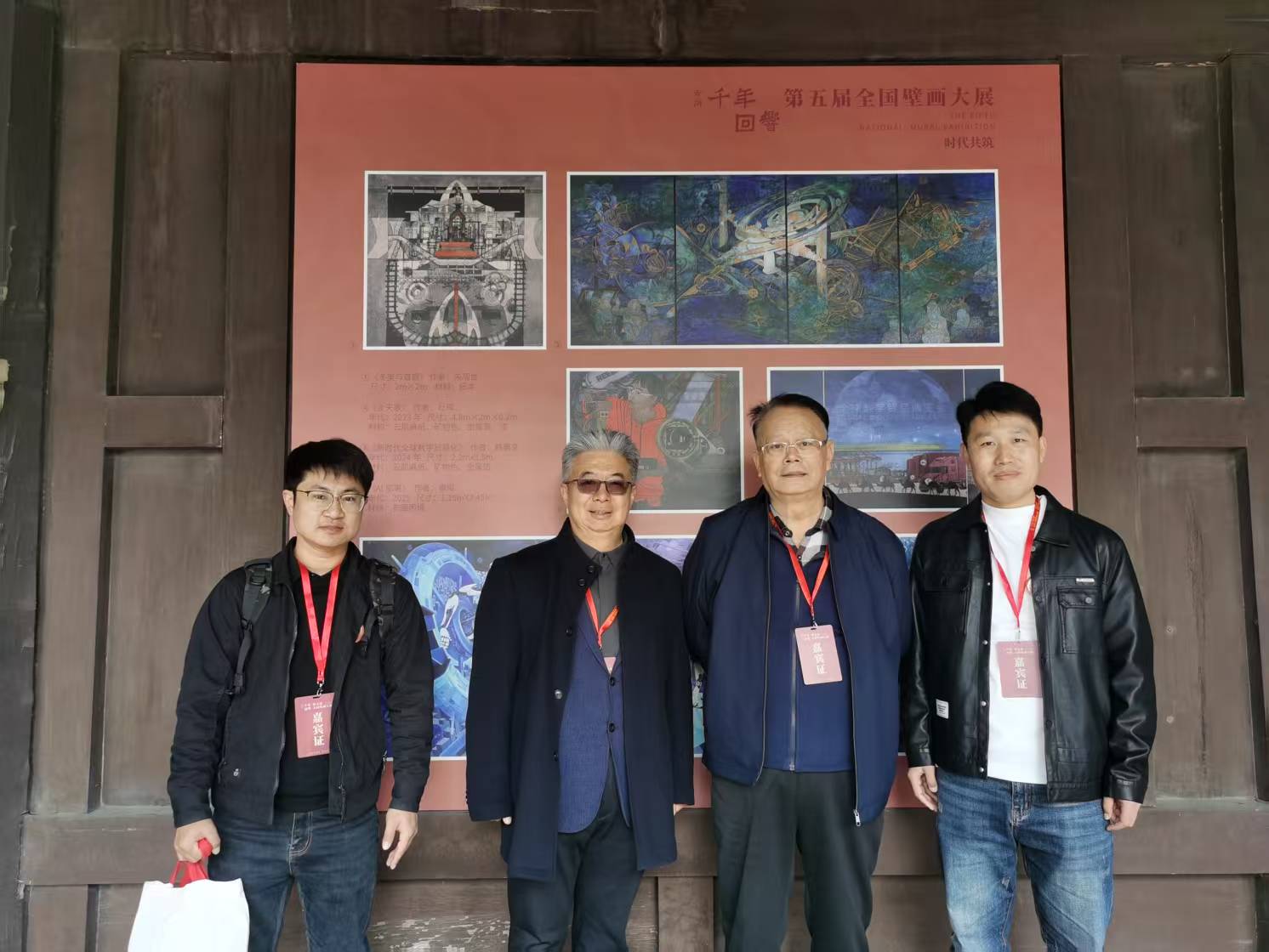 左起:河北美术学院壁画系副主任李东亮,中国壁画学会会长、中央美术学院壁画系教授孙韬,南京艺术学院壁画系教授张静,河北美术学院壁画系教师韩典亮。